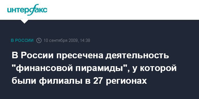 В России пресечена деятельность "финансовой пирамиды", у которой были филиалы в 27 регионах