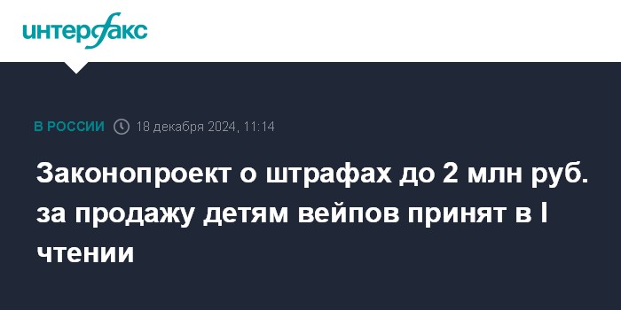 Законопроект о штрафах до 2 млн руб. за продажу детям вейпов принят в I чтении