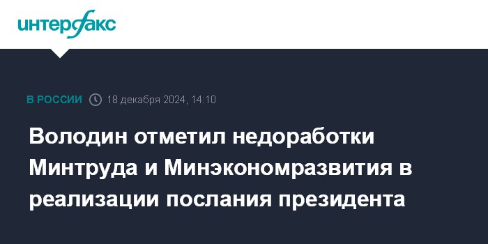 Володин отметил недоработки Минтруда и Минэкономразвития в реализации послания президента