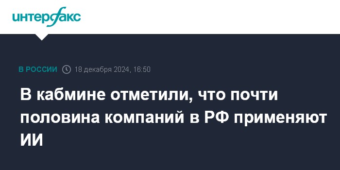 В кабмине отметили, что почти половина компаний в РФ применяют ИИ