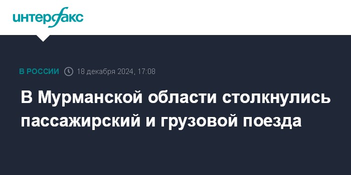 "В результате столкновения пассажирского состава с грузовым в Мурманской области несколько вагонов пассажирского состава сошли с рельсов. Бригады скорой помощи оказывают необходимую помощь пострадавшим", - сказал собеседник агентства.