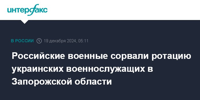 Российские военные сорвали ротацию украинских военнослужащих в Запорожской области