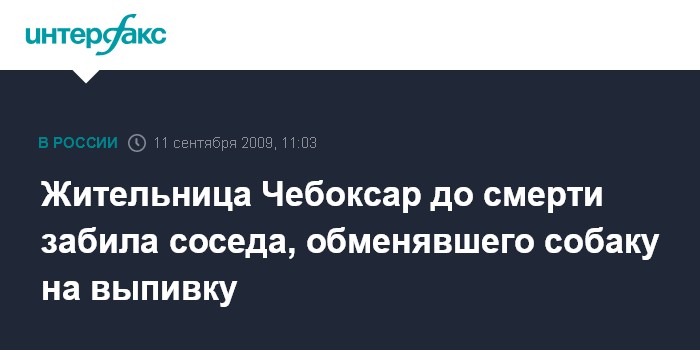 Москва. 11 сентября INTERFAX.RU - В Ленинский районный суд Чебоксар (Чувашия) передано уголовное дело в отношении 22-летней местной жительницы, до смерти избившей соседа за то, что он продал чужую собаку. Как сообщил агентству "Интерфакс-Поволжье" старший помощник руководителя следственного управления СК при прокуратуре России по Чувашии Олег Дмитриев, в июне текущего года девушка узнала от соседей, что один из них за полбутылки водки продал кому-то собаку, хозяином которой был ее сожитель. "Она искала его два часа. Встреча сразу переросла в скандал, в ходе которого обвиняемая нанесла потерпевшему не менее сорока ударов руками и ногами. Удары были такой силы, что мужчина скончался от побоев", - сказал собеседник агентства.