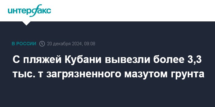Москва. 19 декабря. INTERFAX.RU - Спасатели и волонтеры собрали с пляжей Черноморского побережья Краснодарского края более 3,3 тыс. тонн грунта, загрязненного после разлива топлива из-за крушения танкеров. Об этом сообщает пресс-служба ГУ МЧС России по Краснодарскому краю.