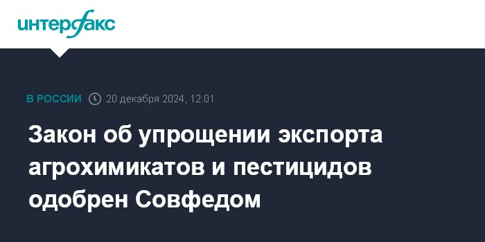 Закон об упрощении экспорта агрохимикатов и пестицидов одобрен Совфедом