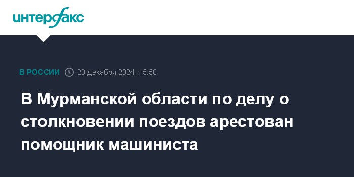 В Мурманской области по делу о столкновении поездов арестован помощник машиниста