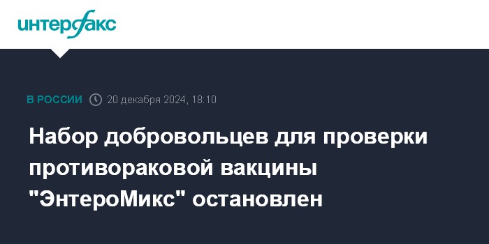 Набор добровольцев для проверки противораковой вакцины "ЭнтероМикс" остановлен