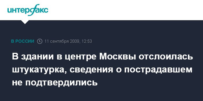 В здании в центре Москвы отслоилась штукатурка, сведения о пострадавшем не подтвердились