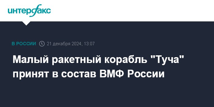 "Приказом главкома ВМФ МРК "Туча" зачислен в корабельный состав Черноморского флота", - сказано в сообщении.