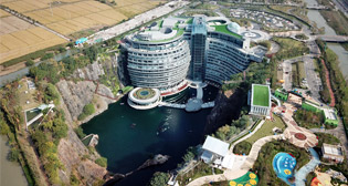 В Китае открылся пятизвездочный гостиничный комплекс Intercontinental Shanghai Wonderland, построенный на месте бывшего карьера в городе Сунцзян 6