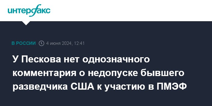 У Пескова нет однозначного комментария о недопуске бывшего разведчика США к участию в ПМЭФ