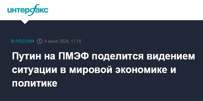 Путин на ПМЭФ поделится видением ситуации в мировой экономике и политике