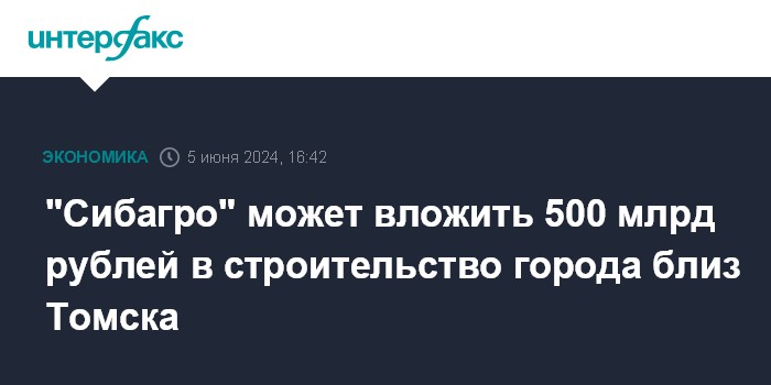 "Сибагро" может вложить 500 млрд рублей в строительство города близ Томска
