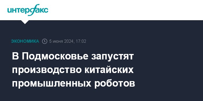 Москва. 5 июня. INTERFAX.RU - В Московской области к 2025 году запустят производство промышленных роботов китайской компании CRP, инвестиции в проект на первом этапе составят 300 млн рублей, сообщает пресс-служба министерства инвестиций, промышленности и науки региона.