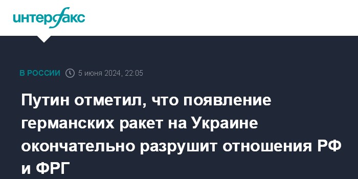 "Теперь, когда говорят, что сейчас еще появятся какие-то ракеты, которые будут наносить удары по объектам на территории России. Это, конечно, окончательно разрушает российско-германские отношения", - сказал Путин в среду.