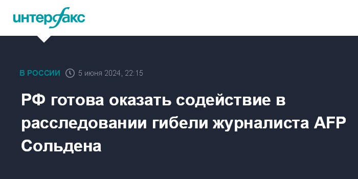 РФ готова оказать содействие в расследовании гибели журналиста AFP Сольдена
