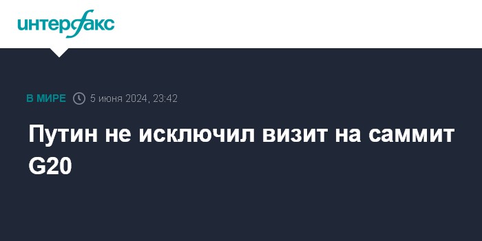 Москва. 5 июня. INTERFAX.RU - Решение о его личной поездке на саммит G20 будет зависеть от ситуации в стране, на украинском направлении и от обстановки в мире, заявил президент РФ Владимир Путин.