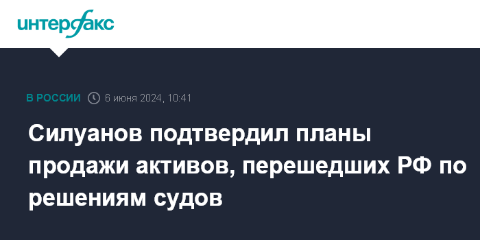 Москва. 6 июня. INTERFAX.RU - Министр финансов РФ Антон Силуанов подтвердил планы продать в дальнейшем активы, которые перешли государству по решениям судов.