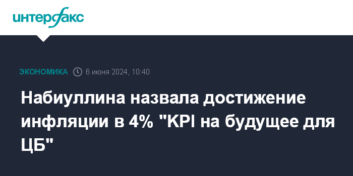 Набиуллина назвала достижение инфляции в 4% "KPI на будущее для ЦБ"