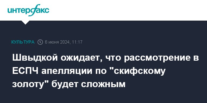 Москва. 6 июня. INTERFAX.RU - Подвижек в рассмотрении ЕСПЧ апелляции крымских музеев по "скифскому золоту" пока нет, заявил спецпредставитель президента по международному культурному сотрудничеству Михаил Швыдкой.