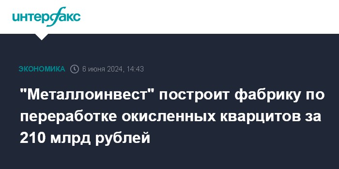 "Металлоинвест" построит фабрику по переработке окисленных кварцитов за 210 млрд рублей