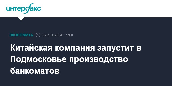 Китайская компания запустит в Подмосковье производство банкоматов