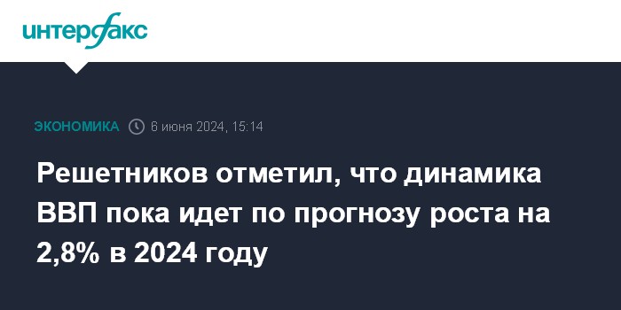 Решетников отметил, что динамика ВВП пока идет по прогнозу роста на 2,8% в 2024 году