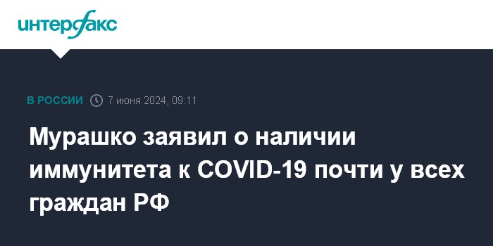 "Практически все сегодня имеют иммунитет к коронавирусной инфекции, но поскольку коронавирус мутирует и есть лица с ослабленным иммунитетом, случаи заболевания новой коронавирусной инфекцией имеются", - сказал Мурашко в интервью "Интерфаксу" на полях Петербургского международного экономического форума (ПМЭФ).
