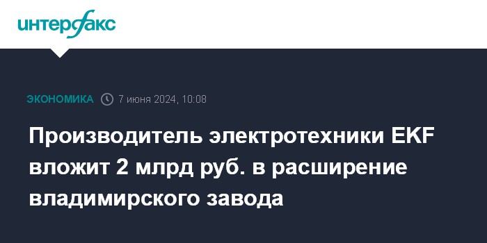 Производитель электротехники EKF вложит 2 млрд руб. в расширение владимирского завода