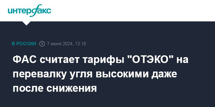 Москва. 7 июня. INTERFAX.RU - Компания "ОТЭКО", увеличение тарифов которой на перевалку угля через терминал в Тамани вызвало проблемы с отгрузками, снизила их, но Федеральная антимонопольная служба по-прежнему считает эти расценки необоснованно высокими. Об этом журналистам в кулуарах ПМЭФ сказал глава ФАС Максим Шаскольский.