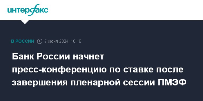 Банк России начнет пресс-конференцию по ставке после завершения пленарной сессии ПМЭФ