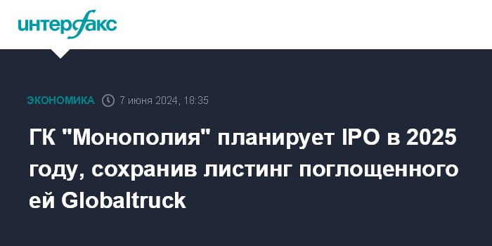 ГК "Монополия" планирует IPO в 2025 году, сохранив листинг поглощенного ей Globaltruck