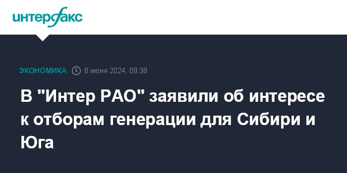 В "Интер РАО" заявили об интересе к отборам генерации для Сибири и Юга