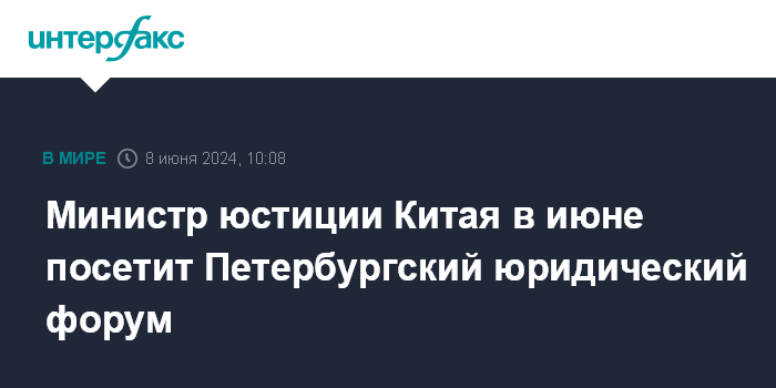 Министр юстиции Китая в июне посетит Петербургский юридический форум