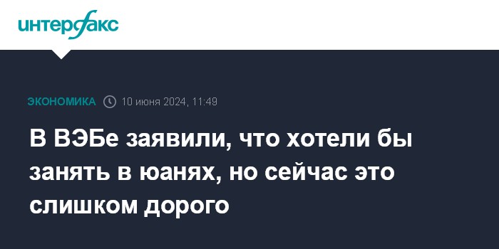В ВЭБе заявили, что хотели бы занять в юанях, но сейчас это слишком дорого