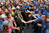 Полиция была вынуждена закрыть вокзал из-за беспорядков, мигрантов оттеснили на площадь и не позволяют им пройти к поездам, несмотря на наличие билетов