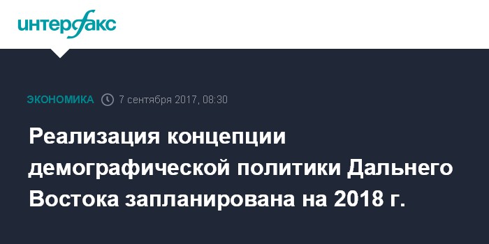 Реализация концепции демографической политики Дальнего Востока запланирована на 2018 г.
