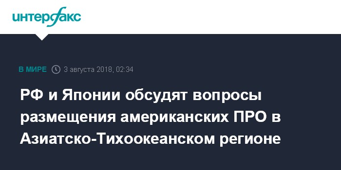 РФ и Японии обсудят вопросы размещения американских ПРО в Азиатско-Тихоокеанском регионе