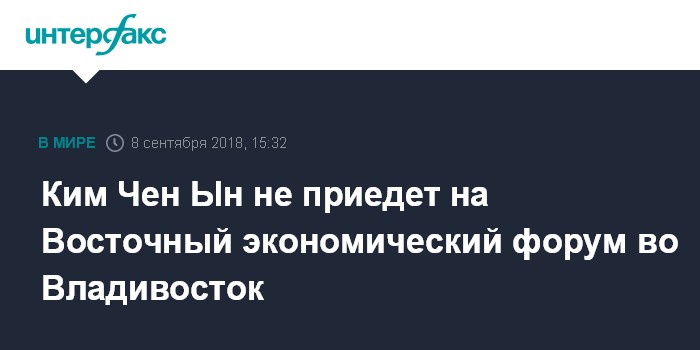 Москва. 8 сентября. INTERFAX.RU - Лидер КНДР Ким Чен Ын не сможет принять участие в Восточном экономическом форуме, но делегация Северной Кореи прибудет во Владивосток, сообщила спикер Совета Федерации Валентина Матвиенко.