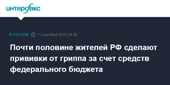 "В этом году правительством выделены очень значительные средства, впервые в истории Российской Федерации выделены средства из федерального бюджета на иммунизацию против гриппа отечественными вакцинами 45% населения Российской Федерации", - сказала Попова журналистам на площадке Восточного экономического форума во вторник.