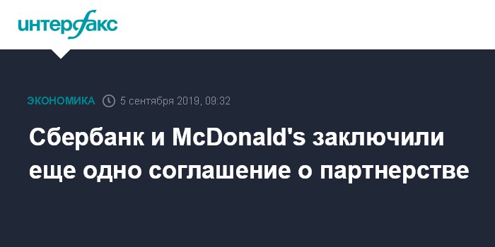 Сбербанк и McDonald's заключили еще одно соглашение о партнерстве