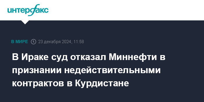В Ираке суд отказал Миннефти в признании недействительными контрактов в Курдистане