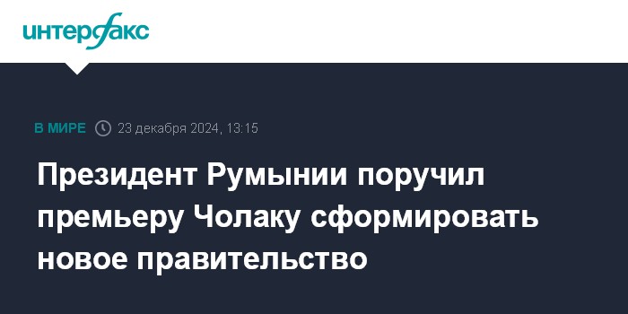 Президент Румынии поручил премьеру Чолаку сформировать новое правительство