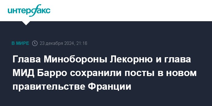 Глава Минобороны Лекорню и глава МИД Барро сохранили посты в новом правительстве Франции