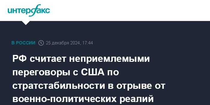 РФ считает неприемлемыми переговоры с США по стратстабильности в отрыве от военно-политических реалий