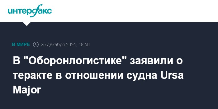 "ООО "Оборонлогистика" полагает, что 23 декабря 2024 года была совершена целенаправленная террористическая атака на судно "Урса Майор", принадлежащее компании", - говорится в сообщении пресс-службы "Оборонлогистики".