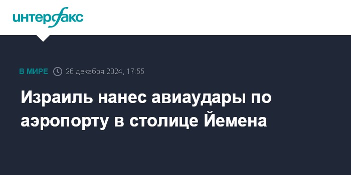 Москва. 26 декабря. INTERFAX.RU - Израильские военные в четверг нанесли авиаудары по международному аэропорту, расположенному в столице Йемена, сообщают ближневосточные СМИ.