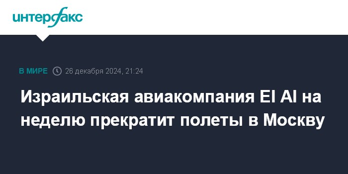 Израильская авиакомпания El Al на неделю прекратит полеты в Москву