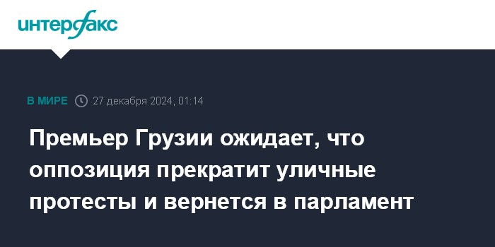 Москва. 27 декабря. INTERFAX.RU - Премьер-министр Грузии Ираклий Кобахидзе считает, что у оппозиции нет ресурса, чтобы добиться проведения новых парламентских выборов.