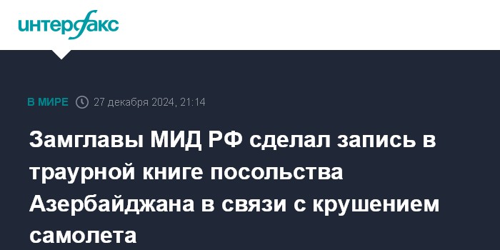 Замглавы МИД РФ сделал запись в траурной книге посольства Азербайджана в связи с крушением самолета